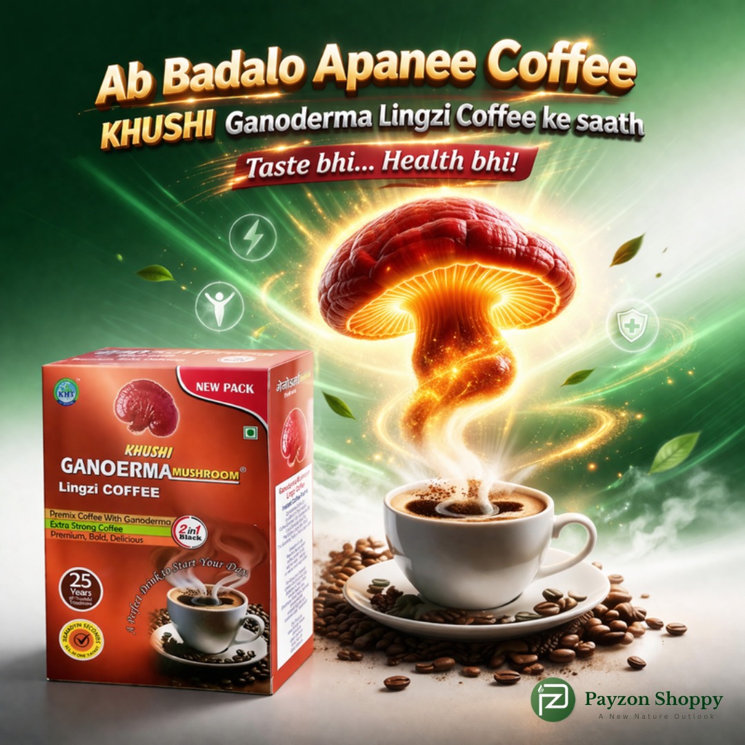 Buy Ganoderma Lingzhi Coffee from Payzon Shoppy Bhopal. Herbal premix coffee with Ganoderma mushroom for energy, focus & wellness. Trusted dropshipping supplier India. This premium 100g pack blends rich coffee taste with powerful herbal benefits. The easy 2-in-1 instant formula lets you prepare a healthy cup in seconds—just add hot water. Perfect for daily use and ideal for dropshipping on Payzon Shoppy Bhopal. Ganoderma Lingzhi Coffee is a premium herbal coffee enriched with Ganoderma mushroom, designed to boost energy, improve focus, and support overall wellness. This 2-in-1 black premix coffee offers a bold and delicious taste with natural health benefits in every sip. Available at Payzon Shoppy in Bhopal, ideal for retail and dropshipping suppliers across India. Key Benefits Supports healthy digestion Boosts natural immunity Helps reduce stress and tiredness Improves blood circulation Smooth energy without heaviness Easy-to-make instant coffee ganoderma coffee India, lingzhi coffee benefits, herbal coffee premix, energy booster coffee, dropshipping supplier India, Payzon Shoppy Bhopal, mushroom coffee India