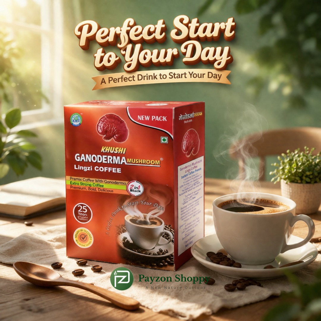 Buy Ganoderma Lingzhi Coffee from Payzon Shoppy Bhopal. Herbal premix coffee with Ganoderma mushroom for energy, focus & wellness. Trusted dropshipping supplier India. This premium 100g pack blends rich coffee taste with powerful herbal benefits. The easy 2-in-1 instant formula lets you prepare a healthy cup in seconds—just add hot water. Perfect for daily use and ideal for dropshipping on Payzon Shoppy Bhopal. Ganoderma Lingzhi Coffee is a premium herbal coffee enriched with Ganoderma mushroom, designed to boost energy, improve focus, and support overall wellness. This 2-in-1 black premix coffee offers a bold and delicious taste with natural health benefits in every sip. Available at Payzon Shoppy in Bhopal, ideal for retail and dropshipping suppliers across India. Key Benefits Supports healthy digestion Boosts natural immunity Helps reduce stress and tiredness Improves blood circulation Smooth energy without heaviness Easy-to-make instant coffee ganoderma coffee India, lingzhi coffee benefits, herbal coffee premix, energy booster coffee, dropshipping supplier India, Payzon Shoppy Bhopal, mushroom coffee India